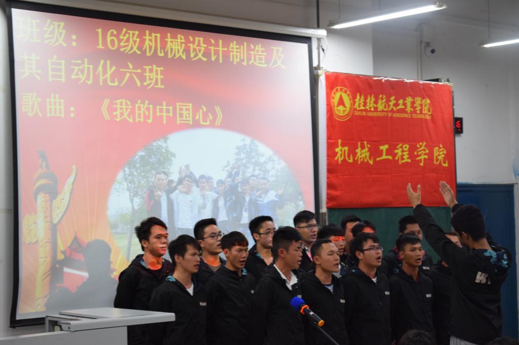 随着参赛的班级陆陆续续的来到教室,歌咏比赛开始了,本次歌咏比赛以班级为参赛单位,共有17个班级,经过筛选,8支队伍脱颖而出,闯进决赛。各参赛队演唱了《我的中国心》、《走向复兴》、《祖国不会忘记》等耳熟能详的爱国歌曲,用激情嘹亮的歌声抒发了对党、对祖国、对公司的热爱之情,用饱满的热情喜迎"十九大"召开。最终2016级飞制一班用他们那响亮而又整齐的声音唱《精忠报国》,唱出他们那爱国的心,震撼全场,从而以93分最高成绩获得了第一名。