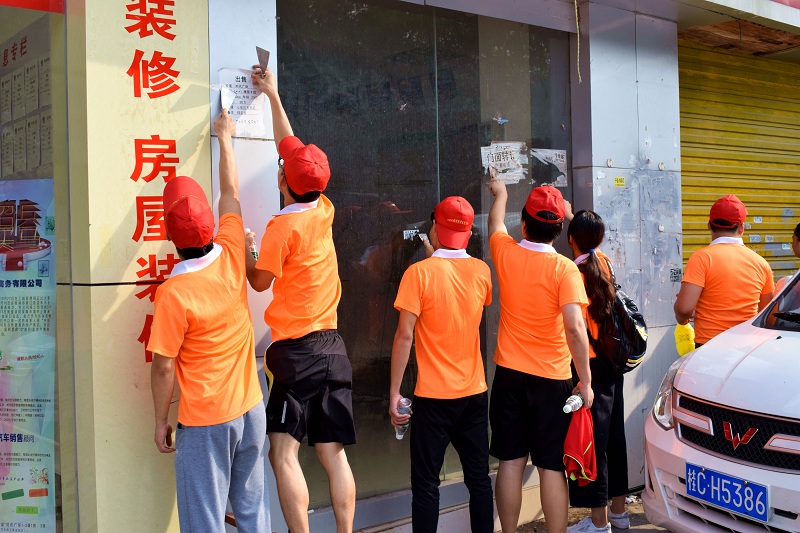 活动中,志愿者们带着铲刀、水桶、扫把、垃圾袋等劳动工具,投入劳动,干劲十足,开展为社区清理小广告、捡白色垃圾等义务劳动。对路灯、电线杆、墙壁上的小广告进行了细致地清理,极大的改善了社区居住环境。