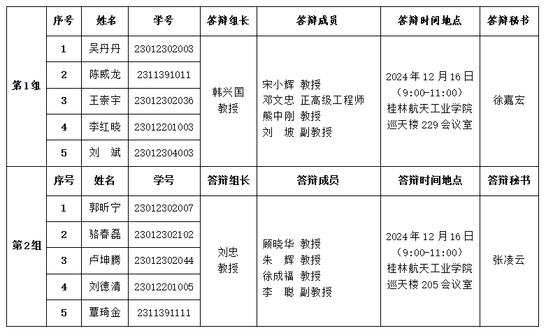 桂航联合培养团队研究生开题答辩安排表