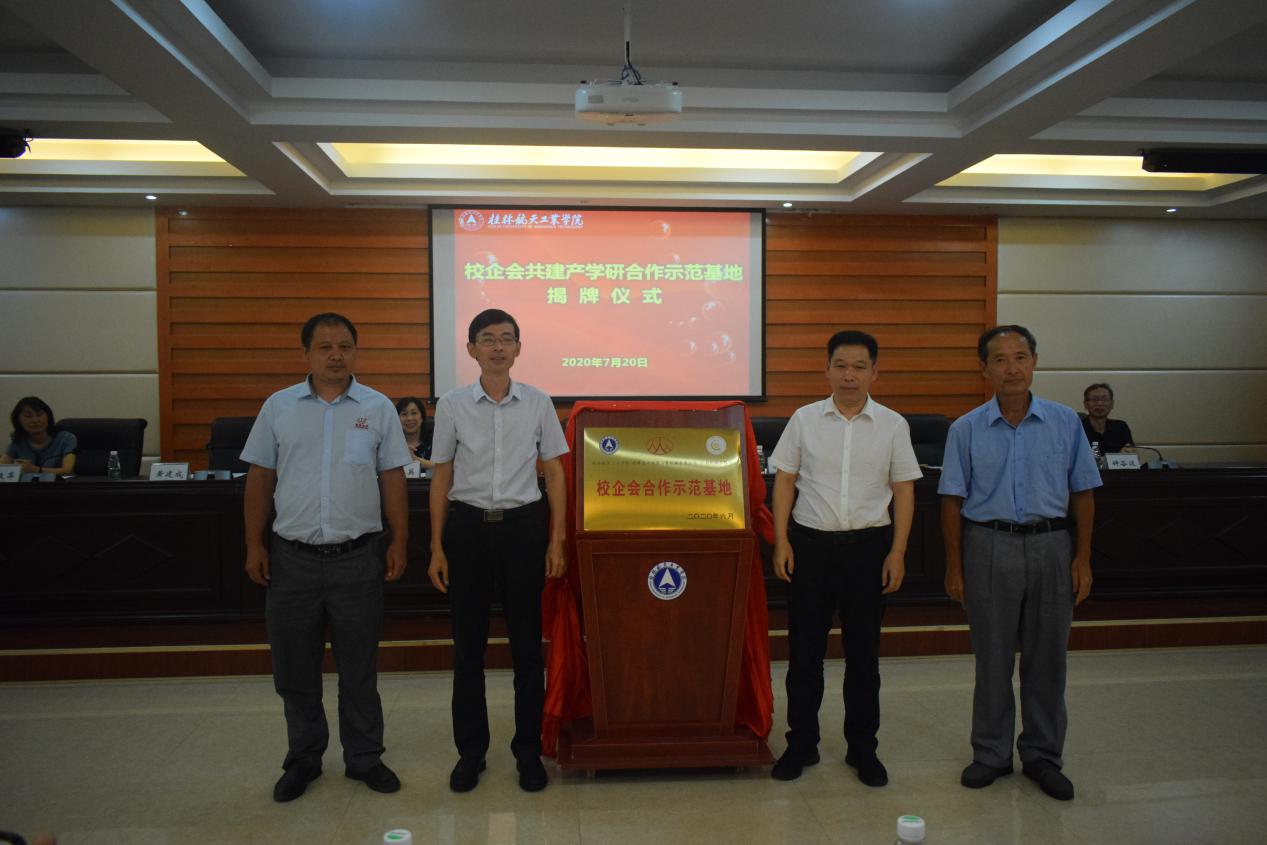 合作共赢,打造产学研基地,奏响校企会合作最强音。7月20日下午,以公司为依托,与广西机械工程学会、桂林金洋地质工程机械有限公司三方合作共建的“校企会产学研合作示范基地”揭牌仪式在公司飞天楼520会议室隆重举行。自治区科协党组成员、副主席朱其东,公司副董事长孙山林,桂林市科协主席俸文英、广西机械工程学会理事长李尚平,桂林金洋地质工程机械有限公司总经理黄建成等领导出席揭牌仪式,自治区科协、桂林市科协,合作三方单位相关部门领导及公司机械工程公司部分师生代表参加了揭牌仪式。仪式由机械工程公司筹办,科技处主要负责人主持。