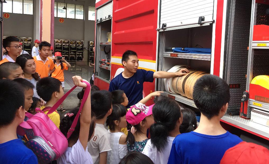 在七星消防中队消防官兵正在为孩子们讲解消防器材 封余溪 摄