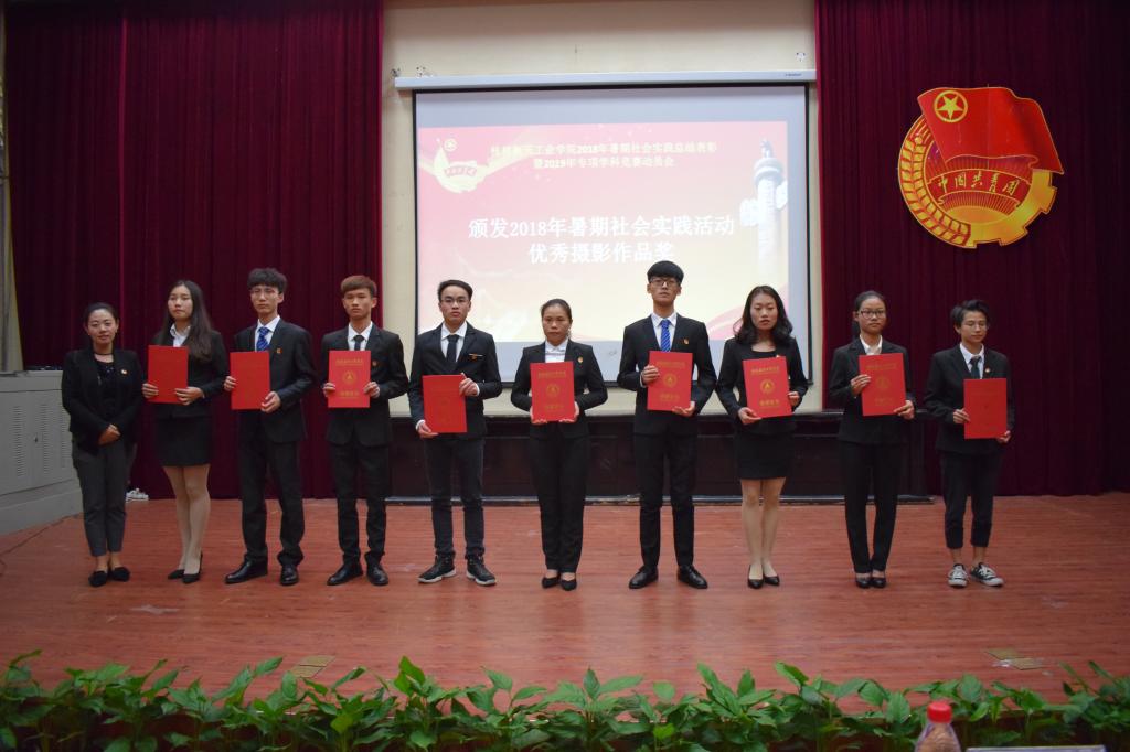 在雄壮的国歌声中,大会正式拉开帷幕。在本次表彰大会中,公司获得了2018年暑期社会实践活动优秀组织奖,以及优秀成果一等奖两项、二等、三等奖各一项,同时还有优秀影视作品一等奖一项,二等奖一项,三等奖两项。此外,公司韦喆、陈秋静等老师分别获得了2018暑期社会实践活动优秀指导老师;黄鹏,龚雅婷等同学分别荣获2018暑期社会实践先进个人奖。在分享经验环节中,四位优秀师生代表上台分享他们的竞赛经验。大会最后由公司党委副书记刘迎春教授做活动总结,在讲话中充分肯定了公司2018年暑期社会工作及成效,并向在实践活动中付出辛勤劳动的师生及组织单位表示感谢,并希望同学们能继续发扬敢于创新,勇于实践的精神。