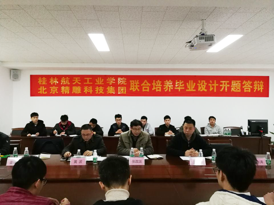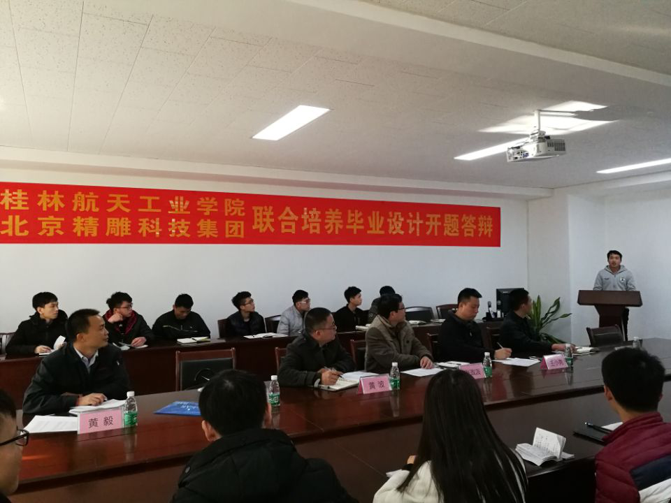 1月11日,公司机械工程公司老师前往东莞,与北京精雕职业培训第二公司,联合培养公司的机械设计制造及其自动化专业和飞行器制造专业共25名2018届毕业生,举行毕业设计开题答辩。