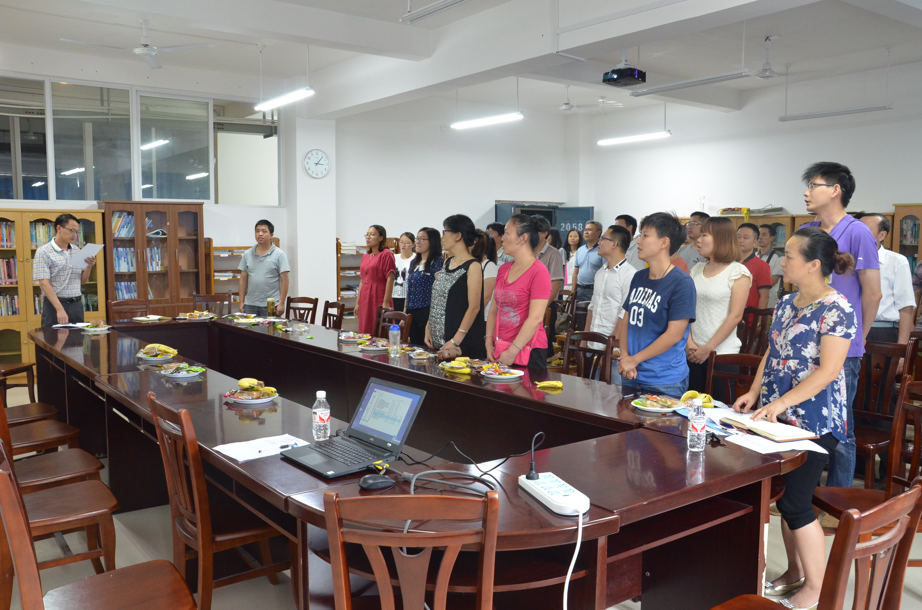 会上,陈爱民书记为全体教师宣讲了公司对教师师德、教师技能和教师发展等方面的相关要求,强调了教师作为灵魂工程师的政治纪律性。希望各位教师能够牢记“三严三实”,以身作则,继续推进“两学一做”,努力从师德师风、教学水平、榜样塑造、模范引导等方面得到进步和提高。