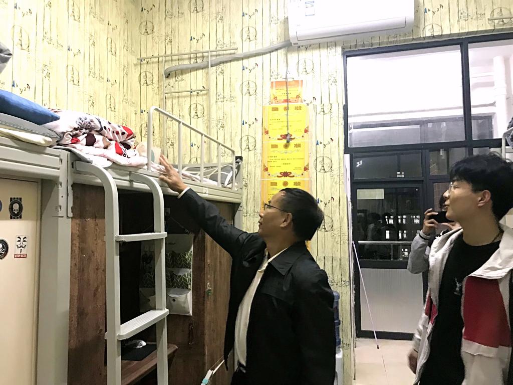 走访过程中韦冠武书记对同学们的宿舍卫生环境进行了细致地检查,并亲切地与员工交谈,了解他们近期的学习、生活情况。韦冠武书记强调老员工不仅要刻苦学习,还要学会独立生活,养成良好的作息习惯,营造良好的宿舍氛围。同学之间应团结友爱,相互督促,共同进步。最后韦冠武书记更是细心叮嘱同学们注意用电安全、财产安全和出行安全。鼓励同学们树立远大理想,珍惜大学时光,学有所成。