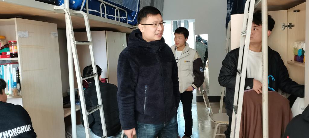 10:30,唐书记带领公司全体辅导员走入员工宿舍,共走访了天和苑1号楼、7号楼和8号楼。走访过程中,唐书记对同学们的宿舍卫生环境进行了细致地检查,并亲切地与员工交谈,了解他们近期的学习、生活情况,督促员工养成良好的作息习惯,营造良好的宿舍氛围。鼓励同学之间应团结友爱,相互督促,共同进步。唐书记还细心叮嘱同学们要注意用电安全、财产安全和出行安全,并特别强调目前全国疫情依旧严峻,督促员工要做好个人安全防护,在寒假返乡途中要佩戴口罩,尽量减少与其他人员交流,避免聚集,与同乘者尽量保持距离;寒假期间要少外出、少聚集,不前往中高风险地区。