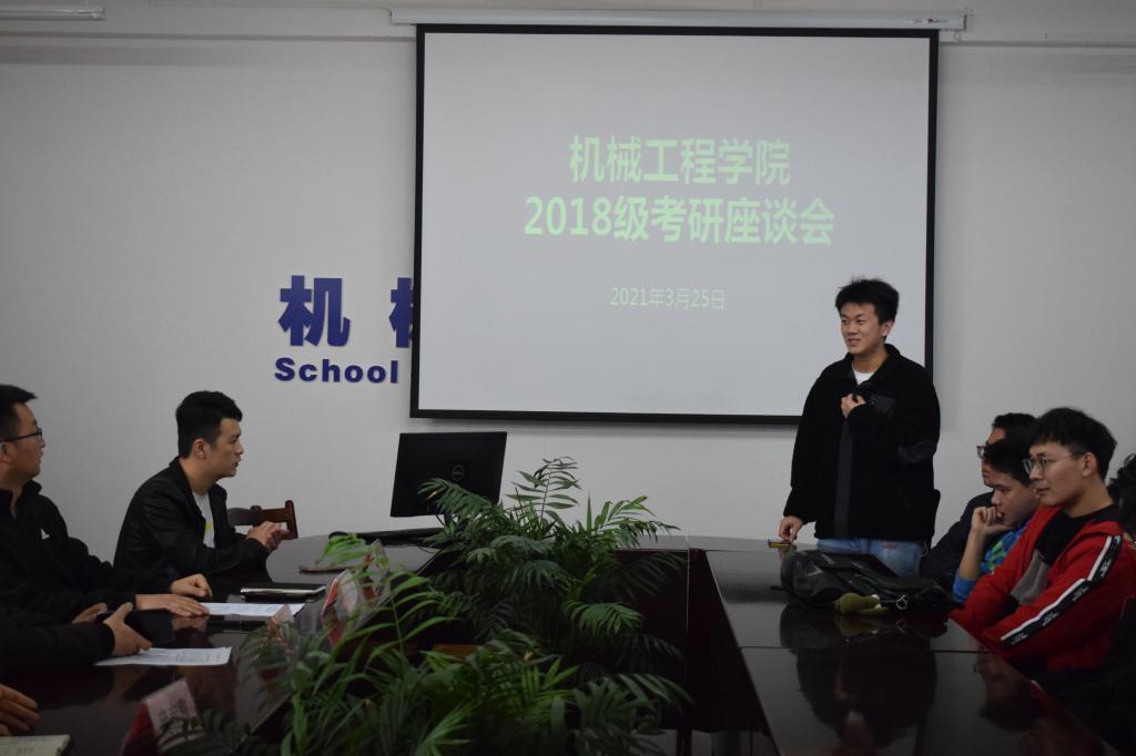2021年3月25日中午,机械工程公司在巡天楼205会议室召开了学院2018级考研员工座谈会,参加本次座谈会的有学院党总支书记唐韬、团委书记黄大键、辅导员庞南霞、陈国恩以及学院2018级考研员工代表。会议由黄大键主持。