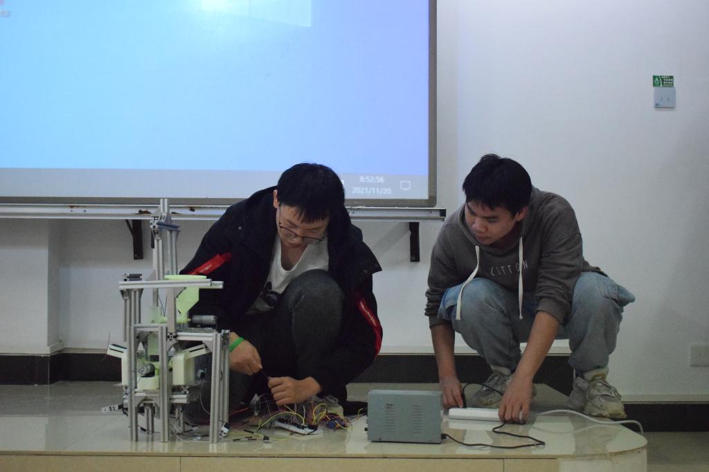 此次比赛采用了自由命题和固定命题两种形式。比赛过程中,参赛团队积极展示自己的作品,有条不紊的进行正常功能演示与讲解。评委老师对员工们的作品流露出赞许,也指出不足之处,并给予有效建议和指导。整个选拔赛气氛活跃,同学们在老师的指导下有了新的感悟,在相互的交流中也得到了新的启发。