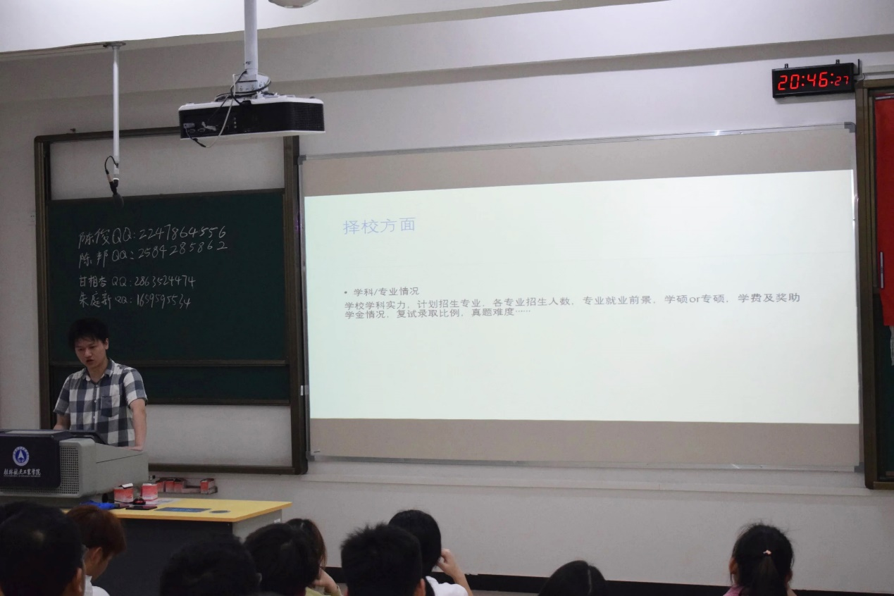 陈邦讲述自身考研时的心路历程,并鼓励大家要为梦想奋斗。陈俊让同学们明白考研的目的,并劝勉同学们选择适当的方法才能事半功倍。