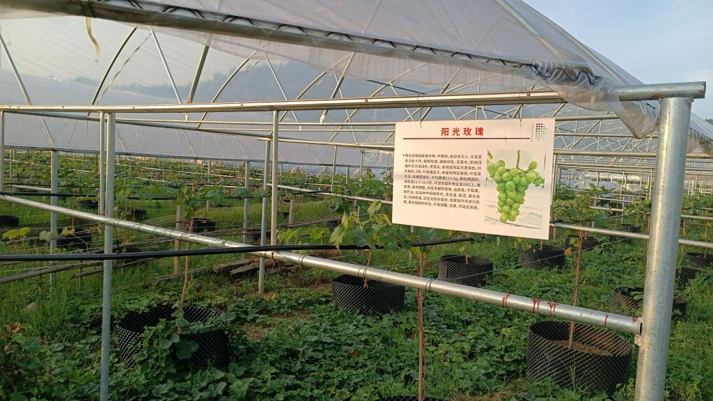 讲解员许玉玲把葡萄比作当地特色农业的闪亮名片,据了解,毛竹山村目前种植葡萄320多亩,包括南玉、红地球以及阳光玫瑰、春光、蜜光、妮娜皇后等新品种,2021年5月还申请了商标。全村46户家家都有葡萄园,多的有十几亩,少的也有两三亩,人均年收入达到3.5万元,高于全县、全市乃至全国的平均水平,为中国的乡村振兴起到了典型的示范性作用。