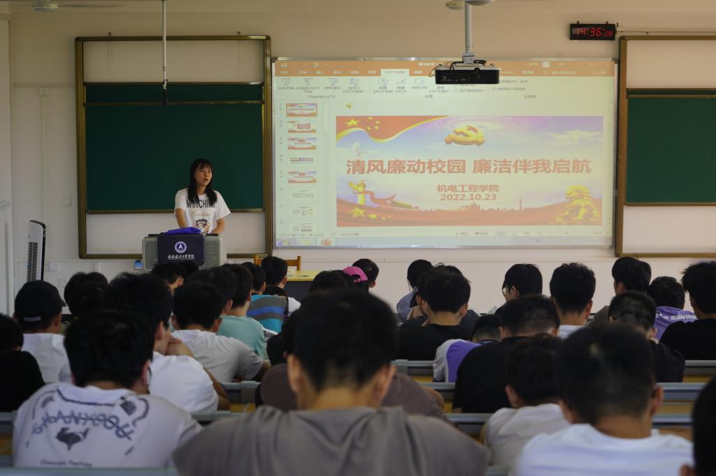 10月23日,bevitor伟德在探天楼B301教室召开“清风廉动校园,廉洁伴我启航”主题教育班会。2019级机械设计制造及其自动化专业全体员工参加会议。班会由公司辅导员吕佳主讲。