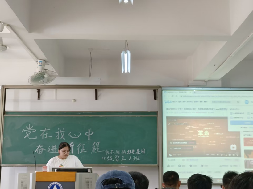 2022年10月22日周六下午14:30,22级智能制造工程1班团支部全体同学在校飞天楼教室305,进行了第一次名为“党在我心中,奋进新征程”的班会活动,围绕“传承发扬红色基因”为中心,以党在新民主主义革命时期、社会主义建设时期、改革开放新时期直至中国特色社会主义新时代的百年发展历程为线索,例举了在该过程中具有划时代意义的红色精神。