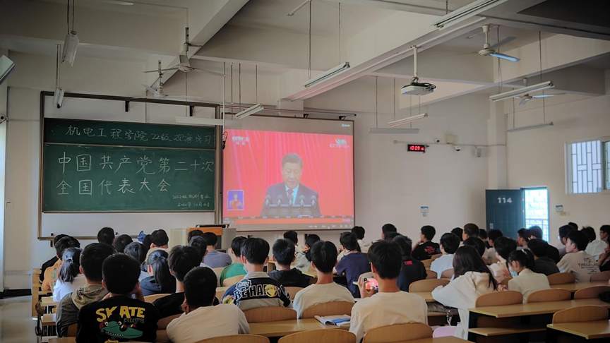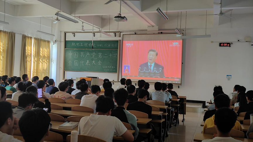 (图为2022级机制1班团支部集中观看中共二十大开幕会直播)