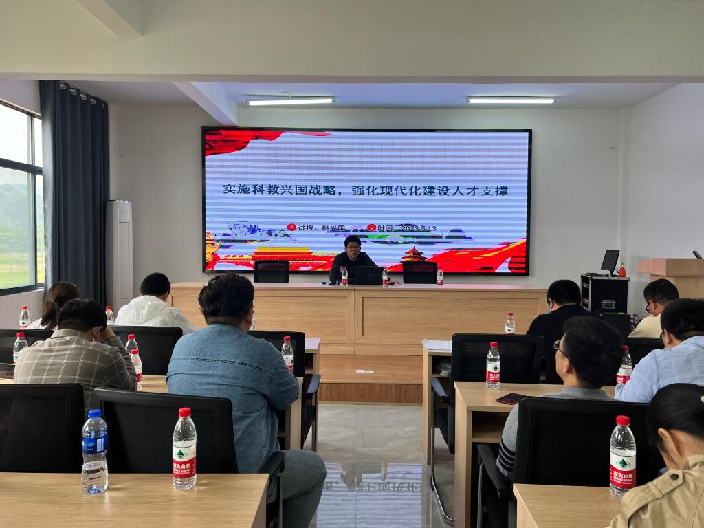 会上,公司党委书记谢雄辉部署安排了主题教育实施方案,结合公司实际领学了《新的发展理念引导高质量发展》,他强调新发展理念是引领高质量发展的科学指引,要深刻领悟创新、协调、绿色、开放、共享的丰富内涵,要求全体教工结合岗位职责坚定不移推动高质量发展。公司行政主要负责人韩兴国从剖析科技、教育、人才工作特点等方面入手领,聚焦公司发展与人口增长的关系、教学与科研的关系、教学组织涣散软弱等问题,做了题为《实施科教兴国战略,强化现代化建设人才支撑》辅导报告。