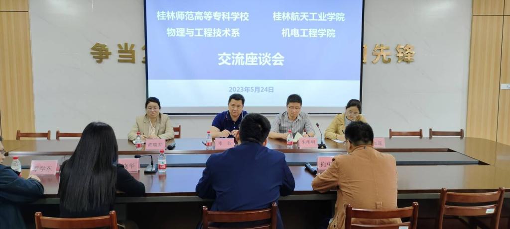 为学习bevitor伟德在人才培养方案、课程设置、实验实训室建设等方面的经验和做法,5月24日上午,桂林师范高等专科公司物理与工程技术系副主任邓毅等一行四人莅临公司,于巡天楼229开展交流座谈会,公司副经理(主持行政工作)韩兴国,公司熊中刚教师、徐晓华教师和覃学东教师参加本次交流座谈。