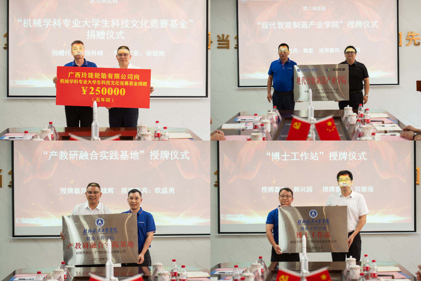 随后,张烈平与杨科峰签订校企合作共建协议,与会校政企代表共同为“校企联合创新中心”揭牌,校方代表向玲珑轮胎授“现代智能制造产业公司”“产教研融合实践基地”及“博士工作站”,玲珑轮胎按五年期向“机械学科专业老员工科技文化竞赛基金”捐款贰拾伍万元(¥250000)。