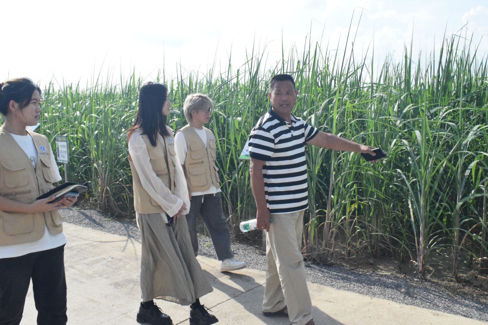 实践团来到黄安村优质“双高”糖料蔗基地探访了当地的“老守蔗员”。他介绍道,我们全村种植甘蔗有5000亩地,种植了12种100%高糖甘蔗,而且糖料蔗基地正在不断探索降本增效、绿色循环的甘蔗种植新路径,在“双高”糖料蔗生产基地实施滴灌、水肥一体化等建设,在适当时会选择人工降雨,让甘蔗得到更好地生长。
