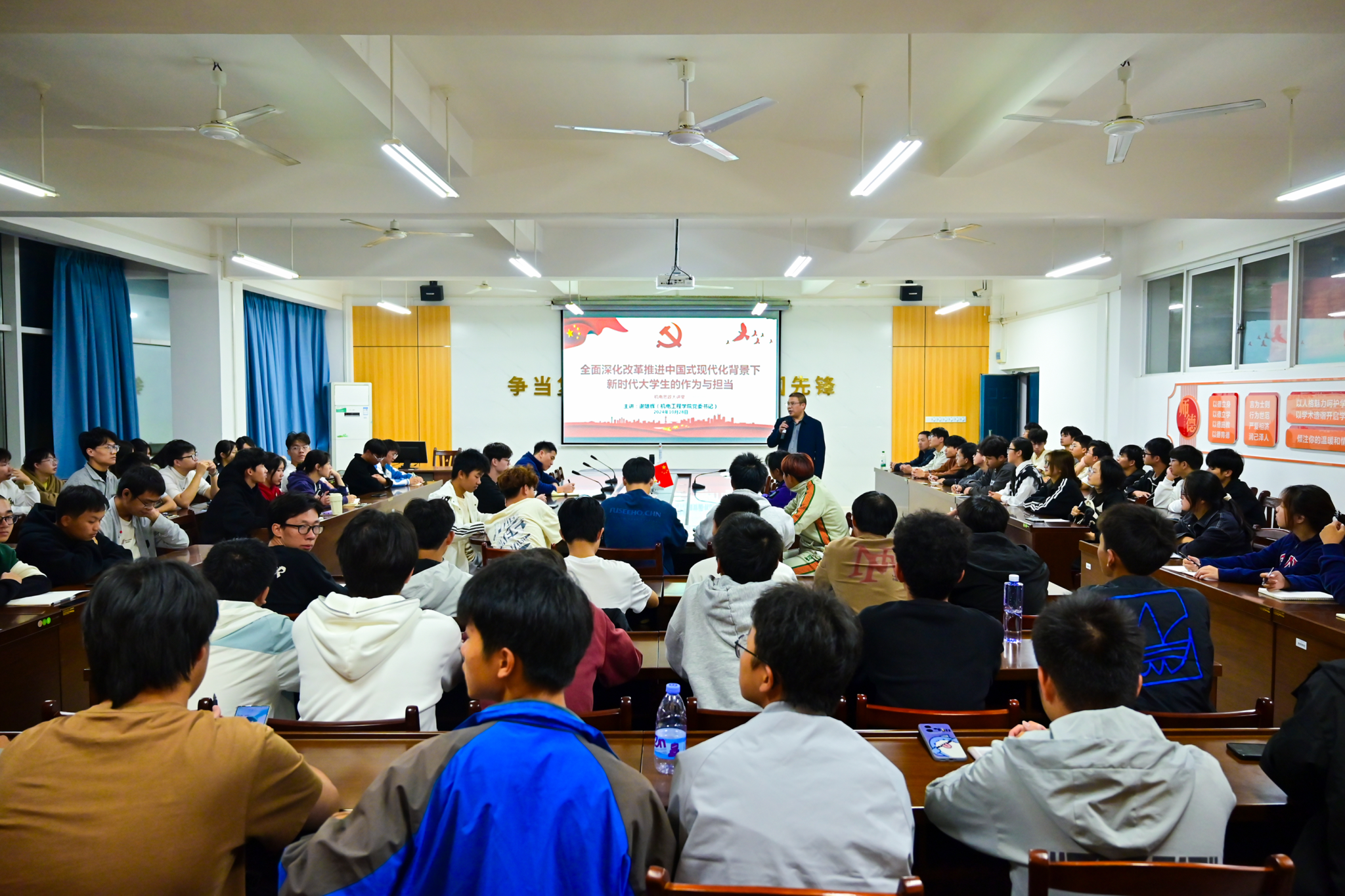 谢雄辉在报告中首先阐述了全面深化改革系列的新思想、新观点和新论断,为师生们深入解读了当前国家发展的宏观背景和战略方向。随后,他分析了新质生产力体制机制下的新形势和新趋势,指出了我国经济社会发展中的新机遇和挑战。