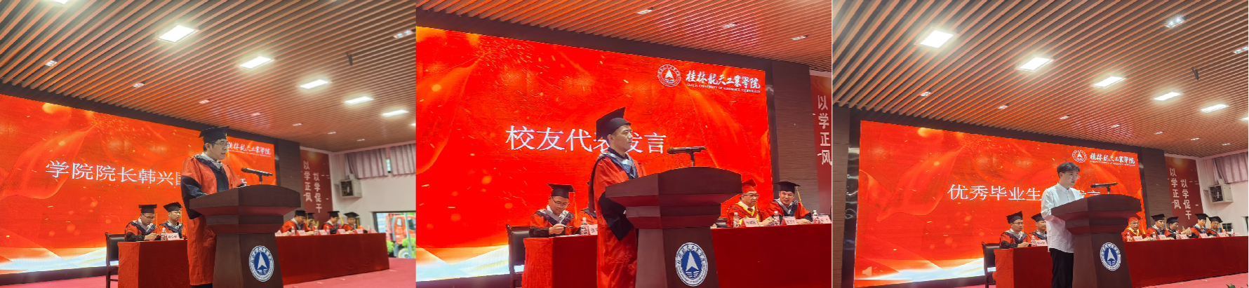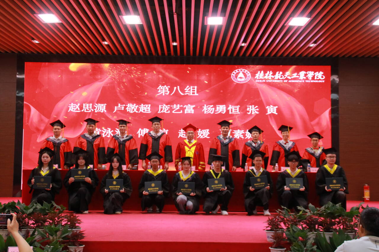 典礼现场,伴随着激昂的旋律,毕业生们依次上台拨穗正冠,从师长手中接过承载荣誉与责任的学位证书。这一庄重仪式不仅是对学业成就的礼赞,更象征着桂航精神的代际传承。