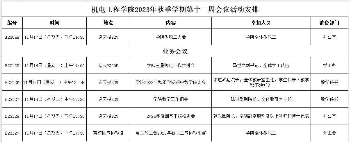 2023年秋季学期第十一周会议活动安排