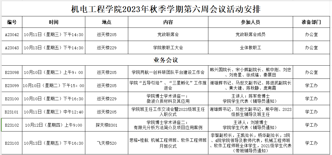 2023年秋季学期第六周会议活动安排