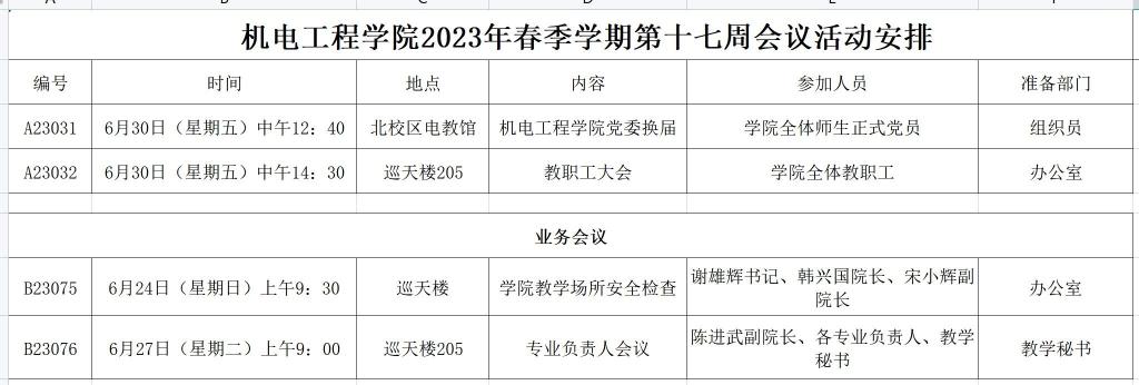 2023年春季学期第十七周会议活动安排