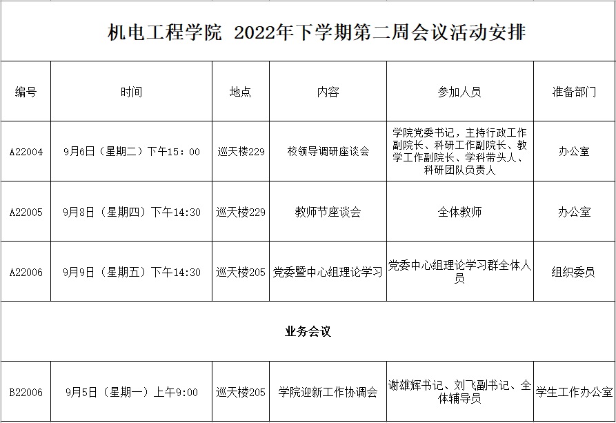 2022年下学期第二周会议活动安排