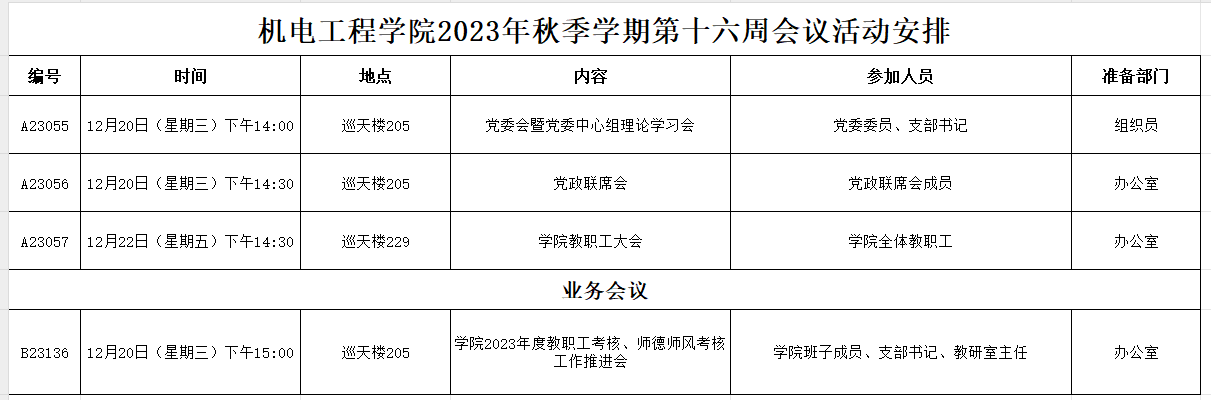 2023年秋季学期第十六周会议活动安排