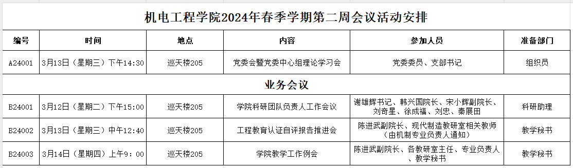 bevitor伟德2024年春季学期第二周会议活动安排