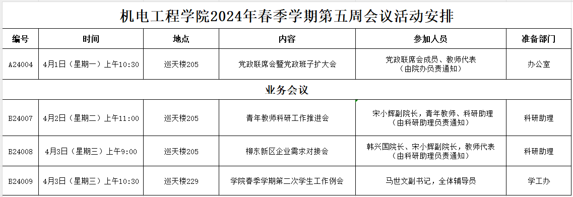 bevitor伟德2024年春季学期第五周会议活动安排