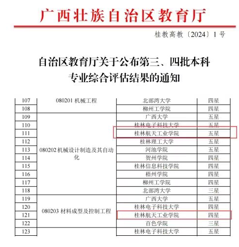 近日,自治区教育厅公布2023年广西普通高等公司本科专业综合评估第三、第四批评估结果。公司参评的机械设计制造及其自动化和材料成型及控制工程两个专业,顺利通过并分别获得五星级和四星级。