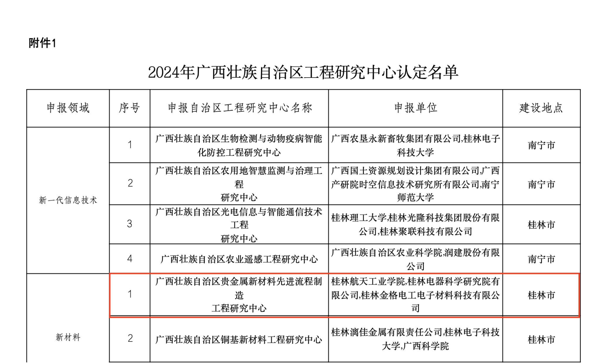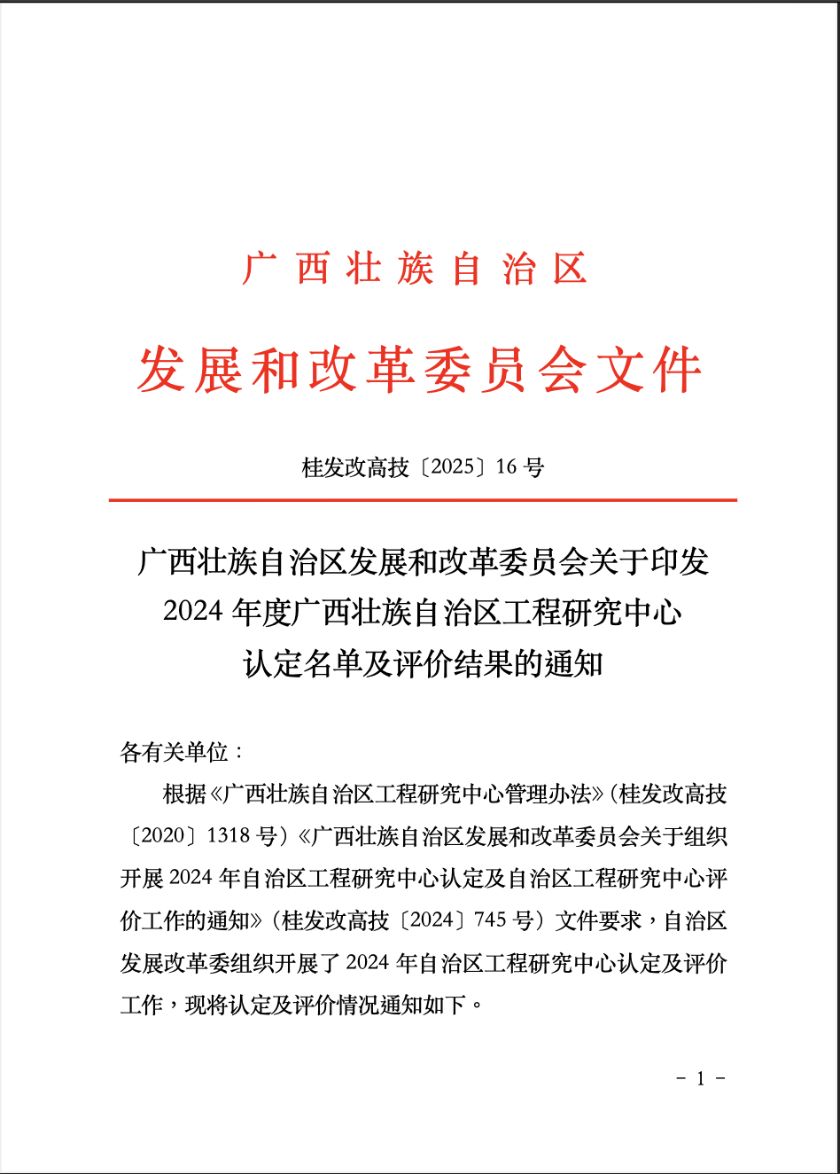 近日,根据《广西壮族自治区发展和改革委员会关于印发2024年度广西壮族自治区工程研究中心认定名单及评价结果的通知》(桂发改高技〔2025〕16号),公司联合桂林金格电工电子材料科技有限公司、桂林电器科学研究院有限公司共建的"广西贵金属新材料先进流程制造工程研究中心"获得认定。该平台为公司积极响应自治区创新驱动发展战略,深入贯彻《广西大众创业万众创新"十四五"规划》(桂发改高技〔2021〕1090号)、《广西壮族自治区工程研究中心管理办法》(桂发改高技规〔2020〕1318号)等文件精神的重要成果,助力广西产业振兴战略实施。
