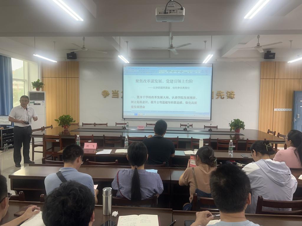 谢雄辉为师生主讲了《聚焦改革谋发展,党建引领上台阶——比学赶超筑堡垒,创先争优亮身份》专题党课,倡导党员干部深刻领会公司发展总目标,认清公司当前发展态势,认真谋划公司发展规划,促进党建与业务融洽,凝心聚力,勇于担当作为。