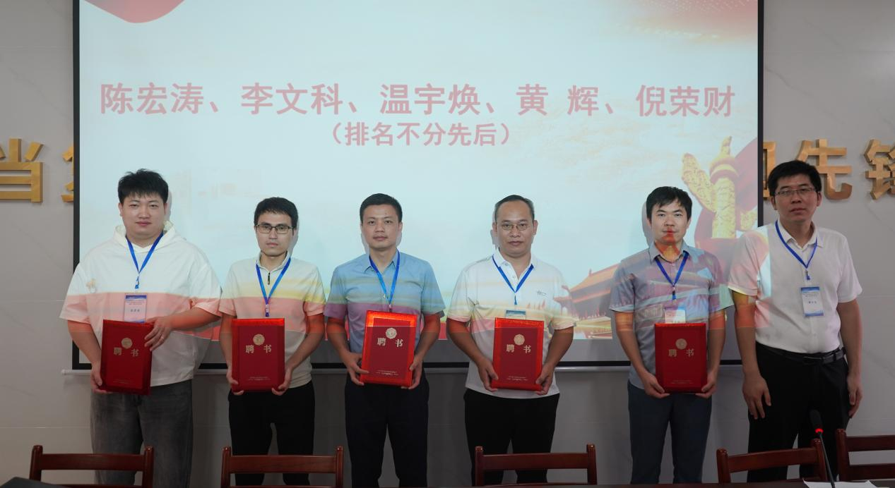 图4 公司副经理(主持行政工作)韩兴国为陈宏涛等5位2021级“榜样示范导师”补发聘书