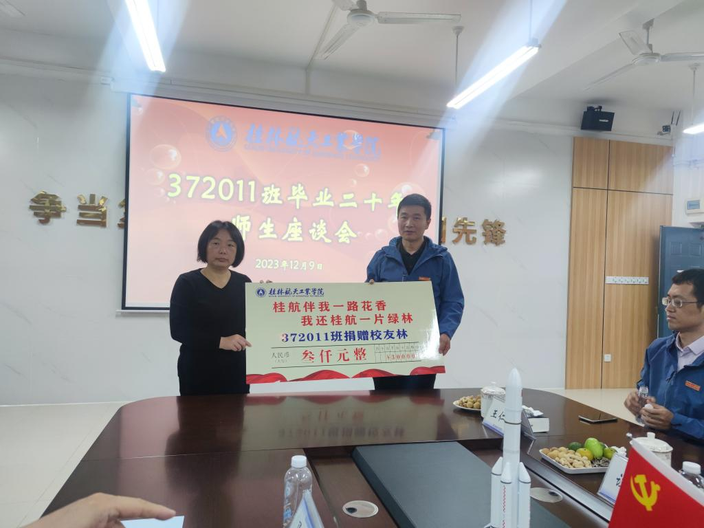 与会的员工分别向母校汇报了二十年来个人发展情况,并表达了对母校思念之情、对老师感恩之意。与会教师也逐个发言,师生相谈甚欢,座谈会气氛非常活跃。与会员工对母校当年搭建的发展平台表达了由衷的感谢,并向母校“桂航伴我一路花香,我还桂航一片绿林”员工林捐赠。