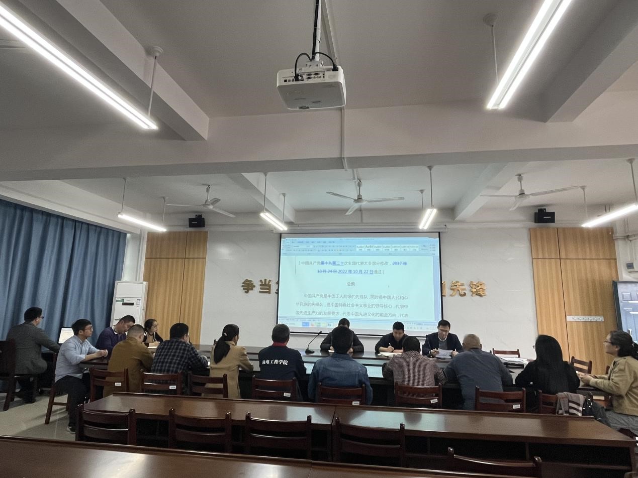会上,支部书记陈进武领学了党的二十大精神,简要报告了二十届一中全会公报,介绍了党章修正后的变动之处。支部成员分别从各自教学科研业务出发,分享了学习体会。