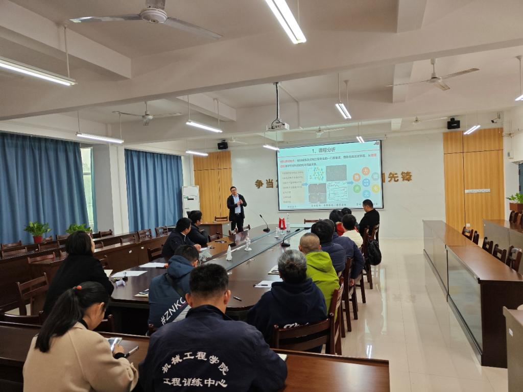 支部党员陈军奇以《材料测试方法》课程为例,对说课比赛内容进行了展示,从参赛课程的选择、思政内容的选取、ppt的修改过程以及备赛期间遇到的问题进行了分享。其他与会老师就课程思政教学设计、思政元素融入等环节进行了讨论。通过本次课程思政说课展示与研讨活动,较好的推动了课程思政教学质量提升,也为明年课程思政说课比赛打下了良好的基础。